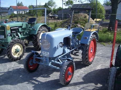 Seit 1993 habe ich eine große Liebe für "alte Traktoren". So fing alles einmal an: Am 01.05.1992 war ich bei meinem Onkel und hatte mich in der Scheune umgesehen. Als dort eine Kurbel und einen Kühler sah wurde ich neugierig. Nach 2 Stunden umschlichten kam endlich der Taktor von meinem Opa zu gesicht. Ein 11er Deutz Bj. 38. Naja ziemlich viel Rost keine Luft in den Reifen aber wir bringen dich schon an die frische Luft. Nach ca. weiteren 2 Stunden kam der erste Startversuch ( denn er stand ca. 15 Jahre ). Nicht gleich beim ersten Versuch aber beim 2. läuft er und ich bin begeistert. ....Inzwischen haben wir den 11 er neu restauriert ! So nach und nach kam noch ein Eicher EKL 15 II, ein Eicher Mammut ED 500 und natürlich mein Lieblingsstück ein Lanz Bulldog D 1706 hinzu.